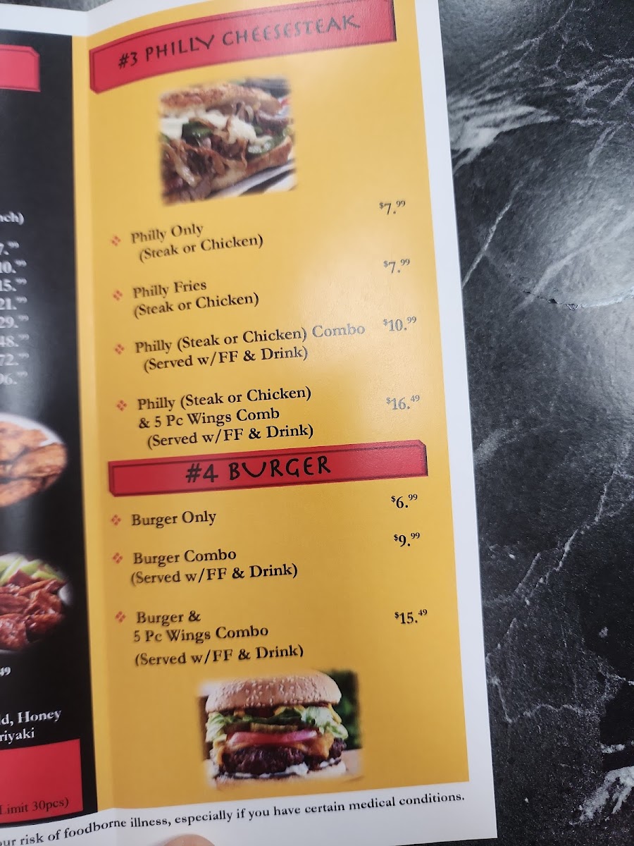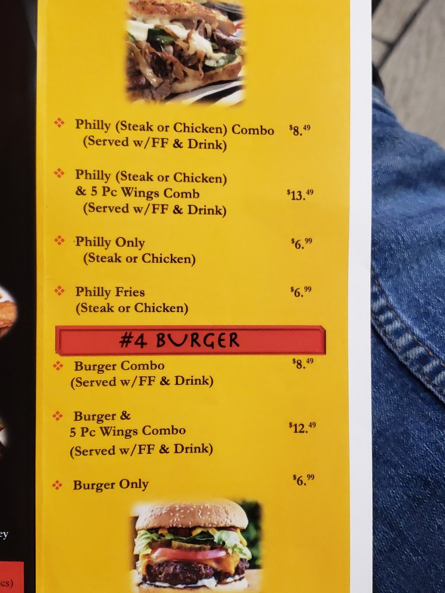 Beyond wings, the menu expands into classic comfort territory with Philly Cheesesteak selections such as Philly Only (Steak or Chicken), Philly Combo (Steak or Chicken), Philly (Steak or Chicken) & 5pc Wings Combo, and loaded Philly Fries (Steak or Chicken). Burger fans can opt for Burger Only, Burger Combo, or the indulgent Burger & 5pc Wings Combo. For quick bites and family-friendly picks, Chicken Tenders & Nuggets are available as 2pc Tenders or 6pc Chicken Nuggets, 4pc Tenders or 12pc Chicken Nuggets, 6pc Chicken Nuggets Combo, and 4pc Chicken Tenders Combo.